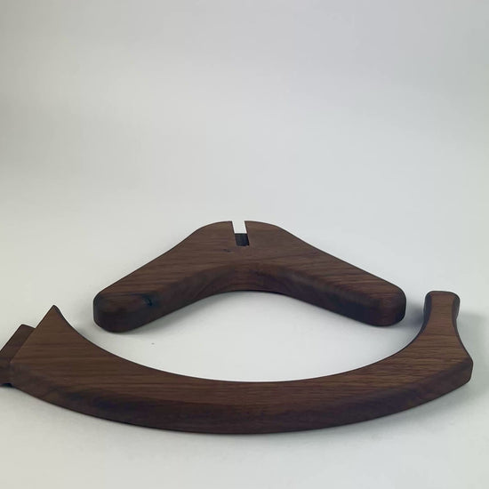 Elevate your desk space or gaming area with this Mid Century inspired, walnut headset hanger. Featuring a minimalist design and a rich blend of natural wood tones, this hook is the perfect resting spot for your headset while adding a touch of sophistication to any setup.